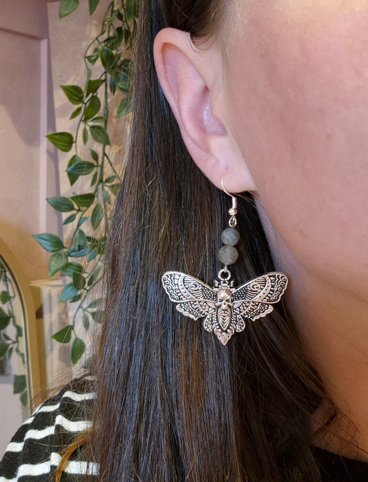 Death Moth Earrings with Labradorite & Sterling Silver Hooks