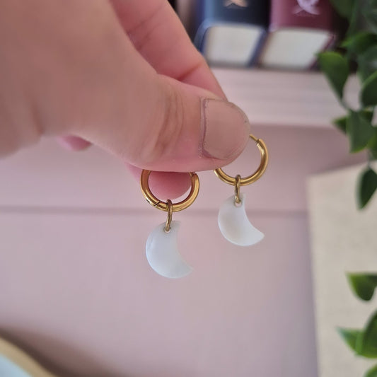 Gold Stainless Steel Crescent Moon Huggie Hoops