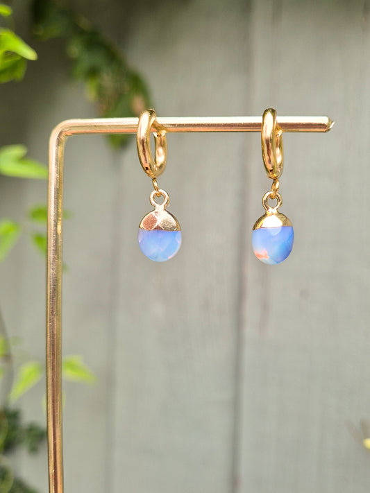 Opalite Huggie Hoop Droplet Earrings: 18k Gold Plated Stainless Steel