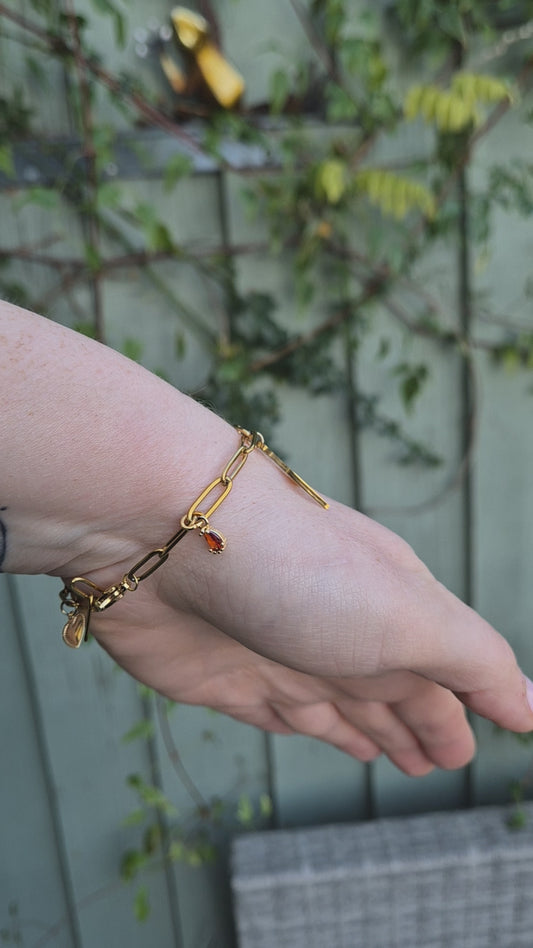 Gold Lightning Bolt & Orange Cubic Zirconia Charm Necklace