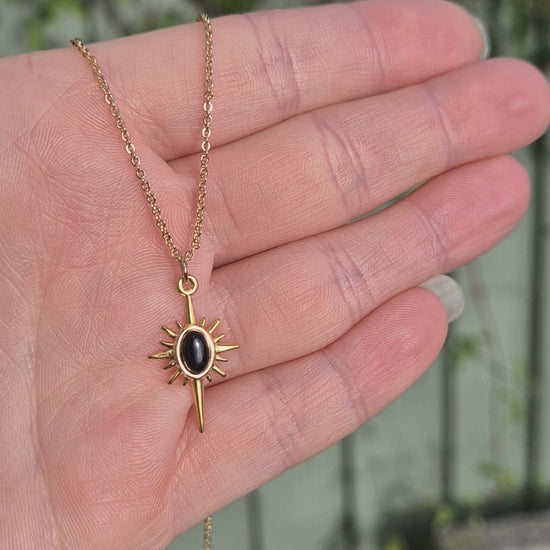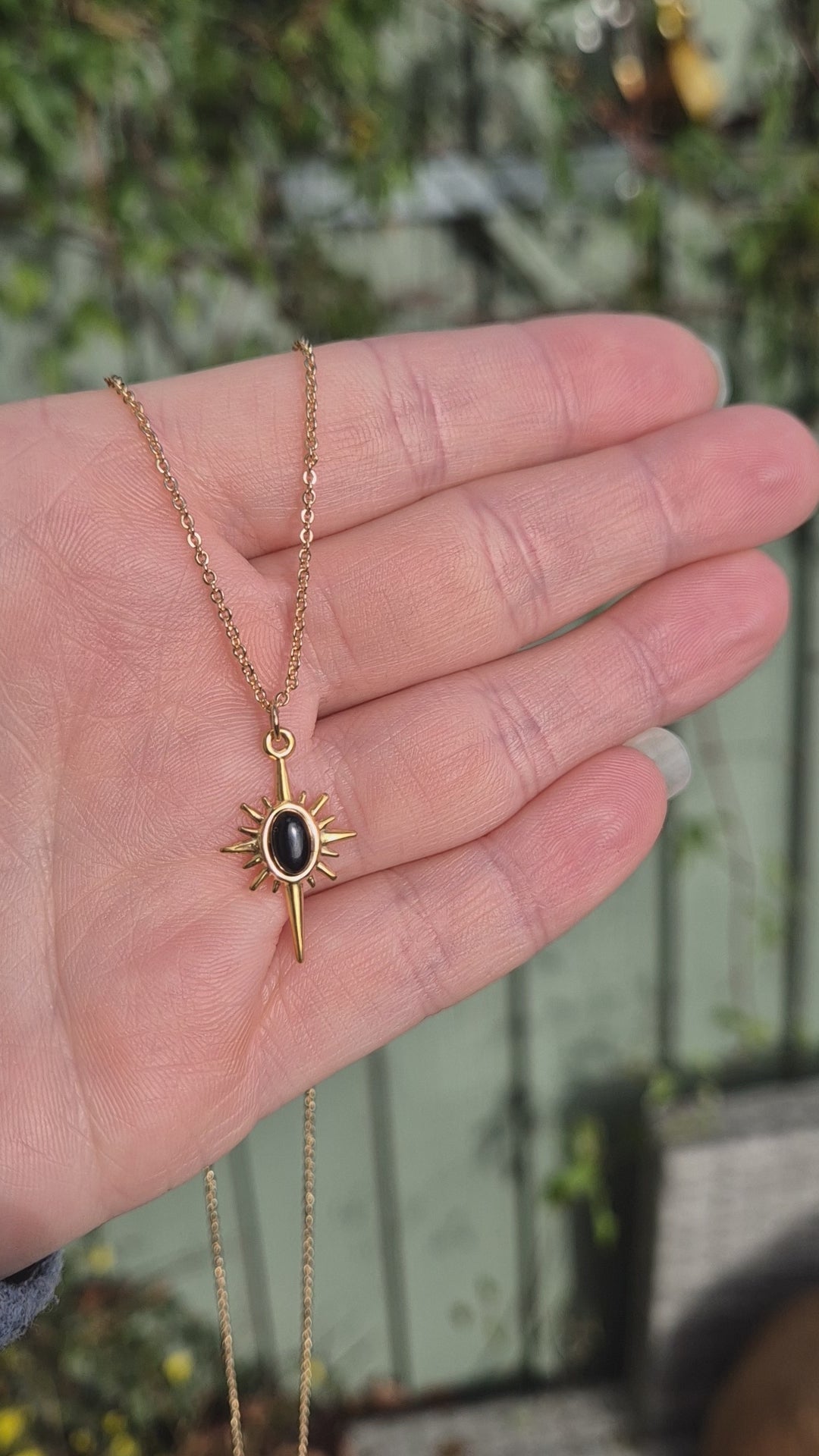 Dark, celestial and witchy. This necklace features a polished black onyx star on a gold plated chain - perfect for embracing the night-sky side of the Opalite Skies & Onyx Nights collection. A gorgeous grounding piece to contrast the opalite designs.