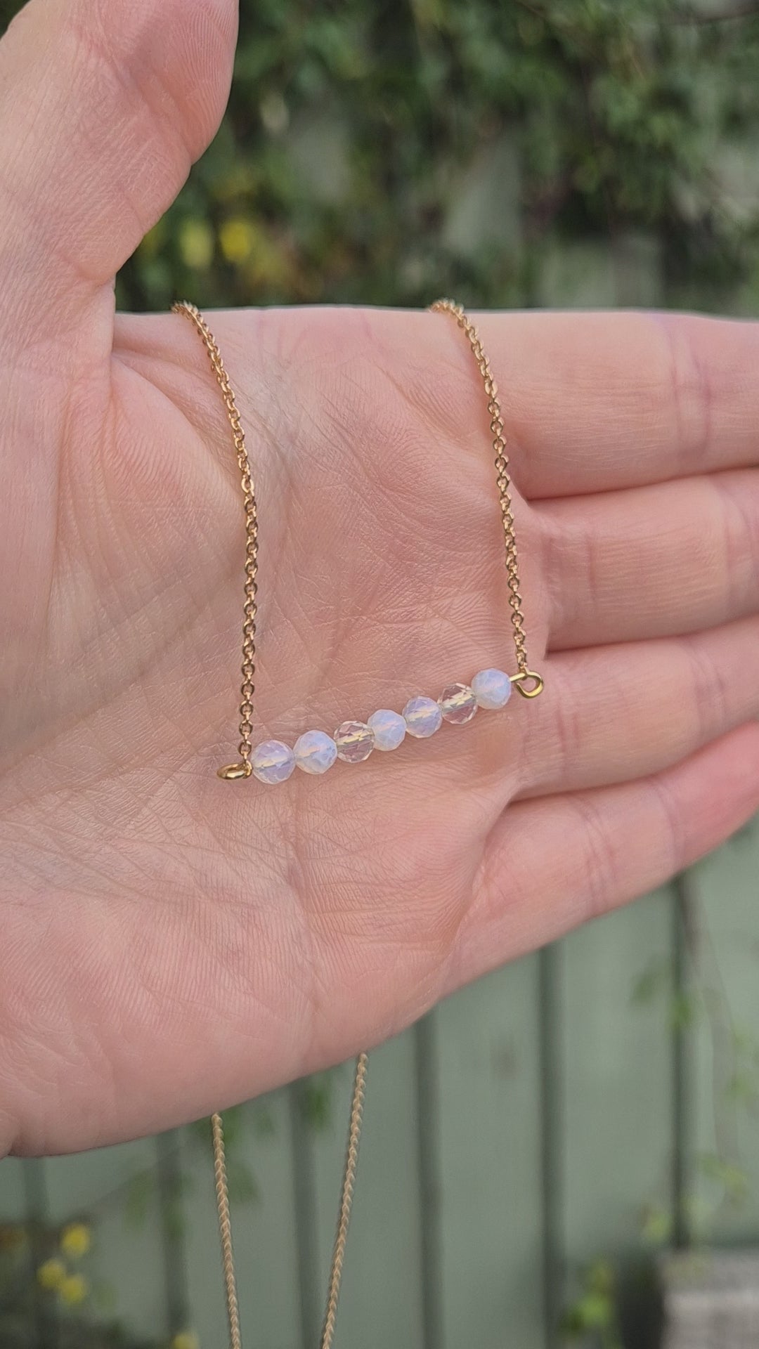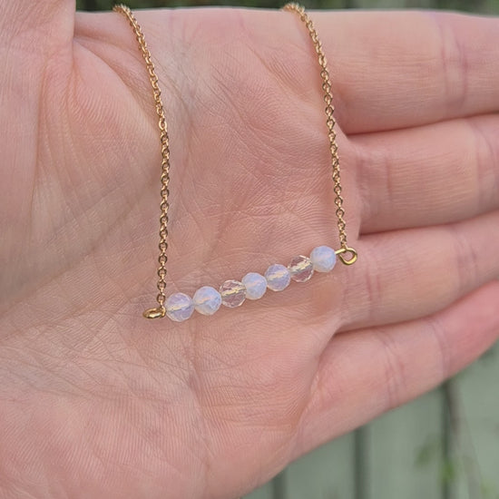 Shimmering opalite beads attatched to a gold plated chain, giving soft magical-girl energy with a celestial twist.