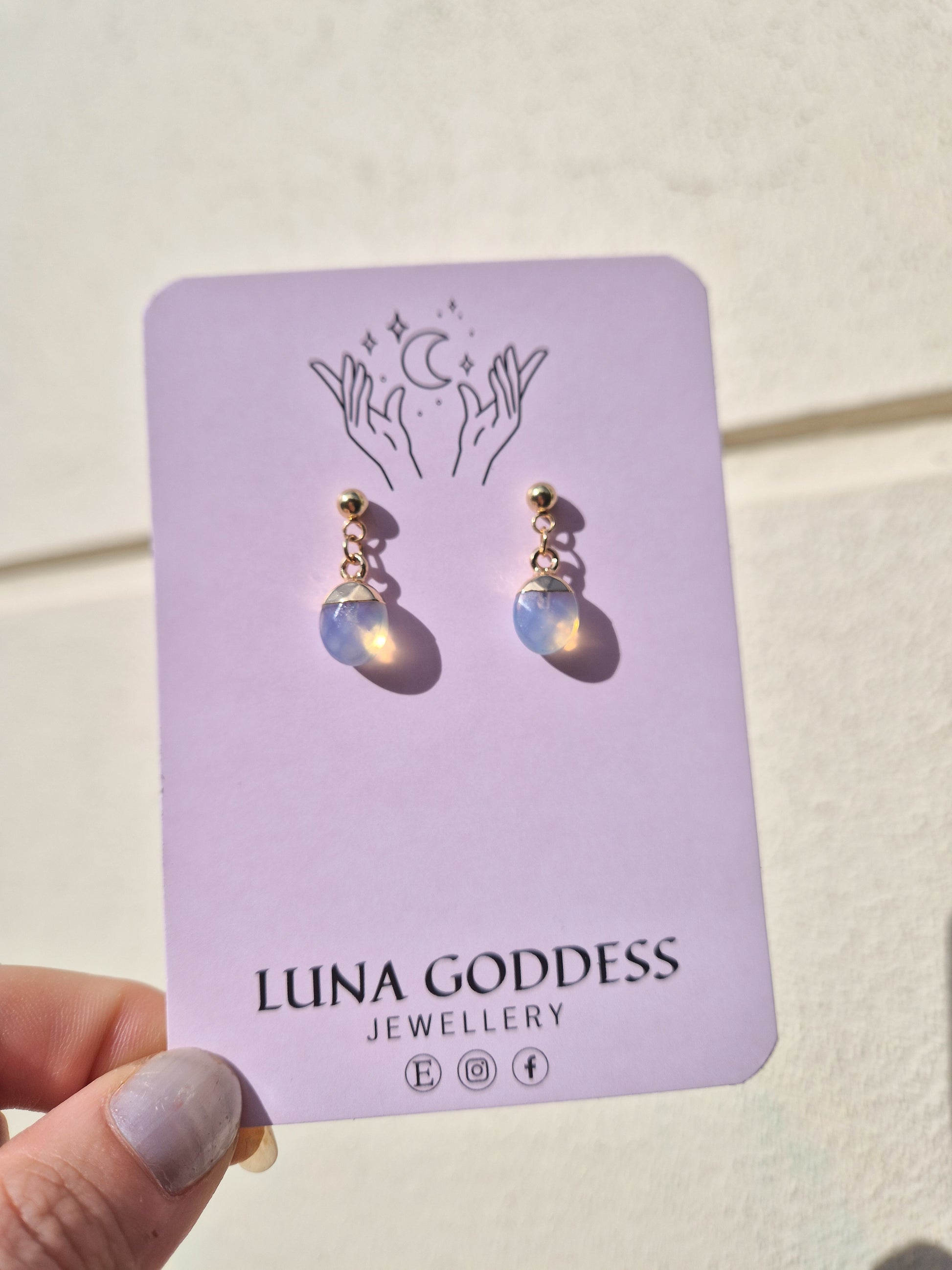 Opalite Stud Drop Earrings: 18k Gold Plated Stainless Steel